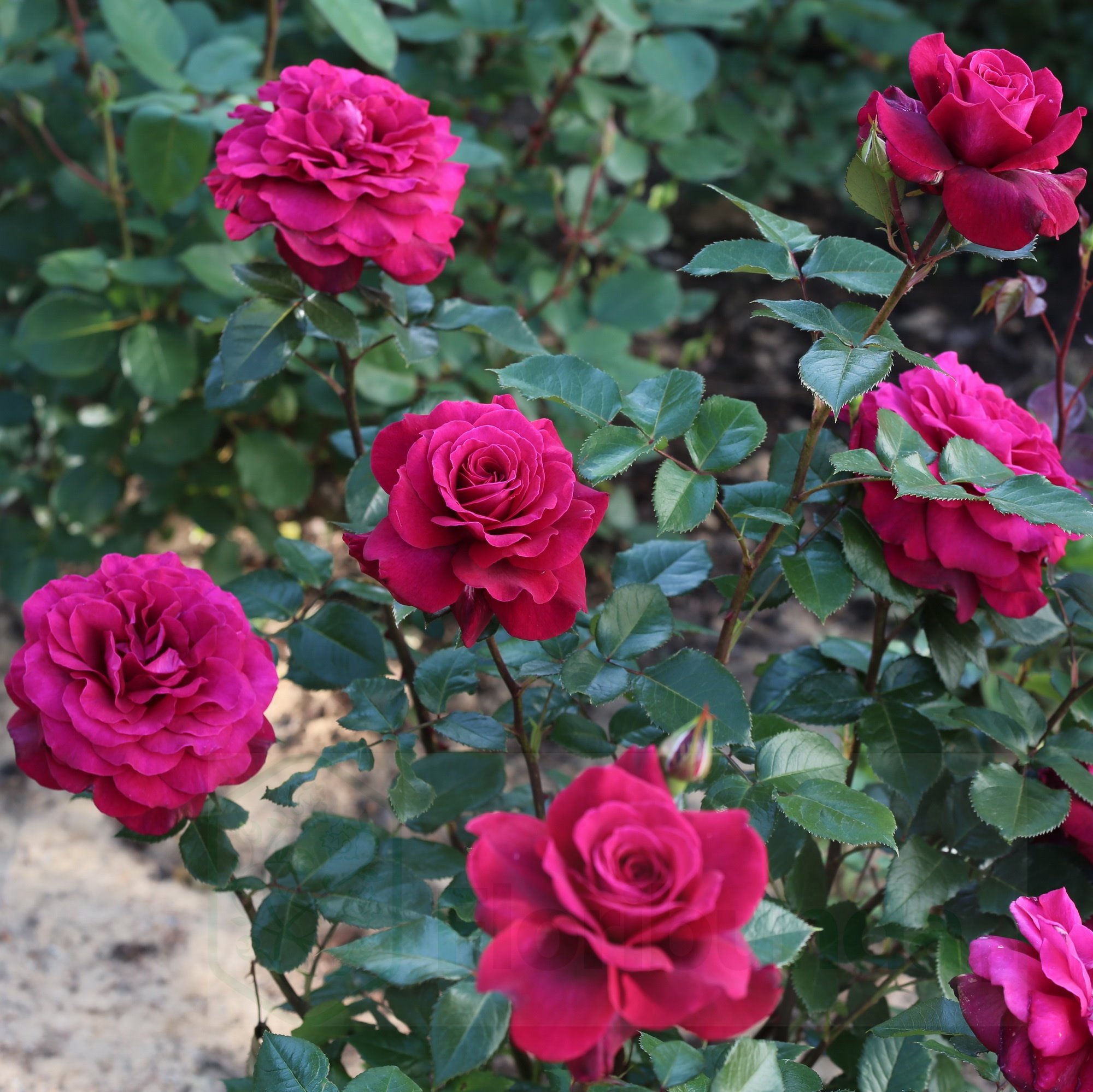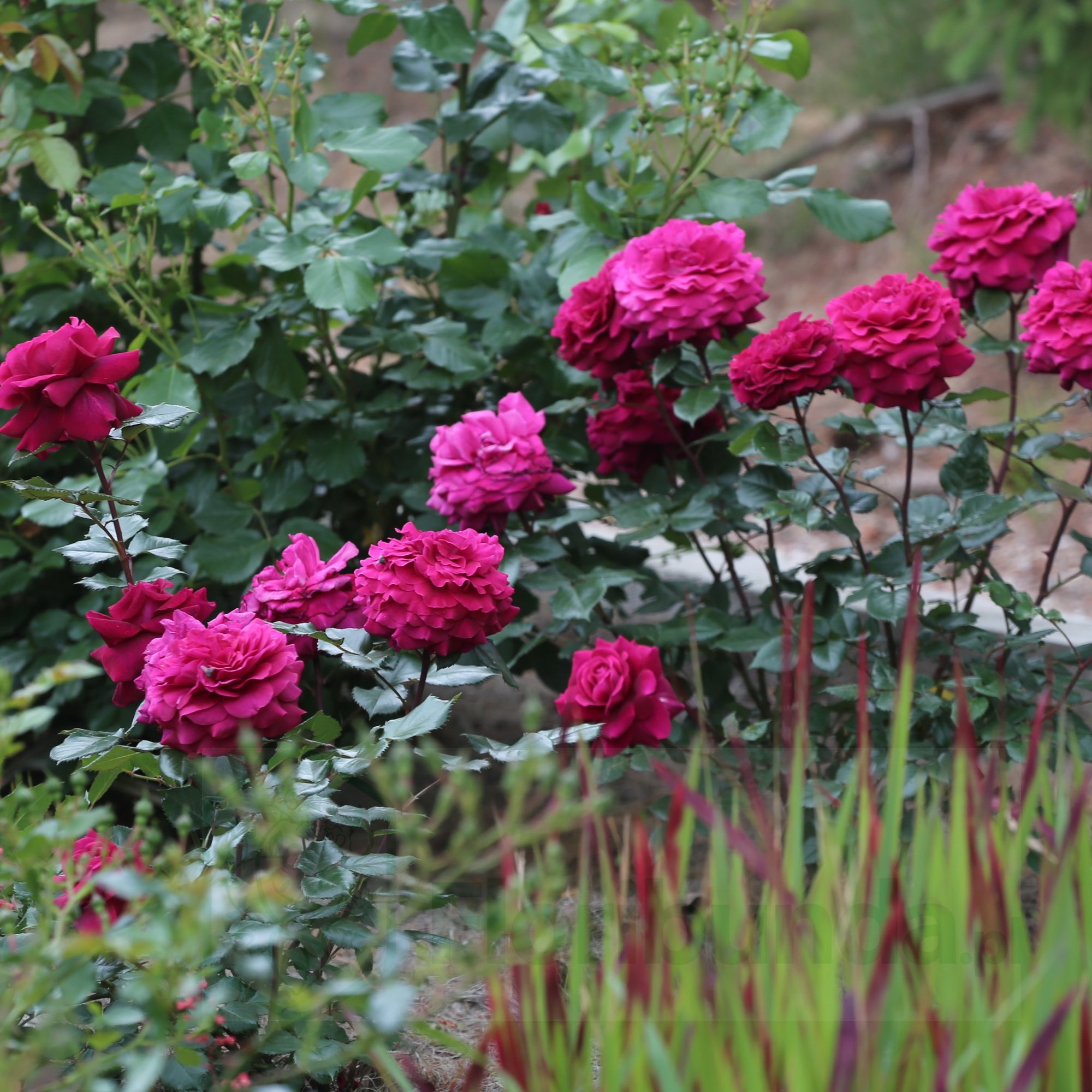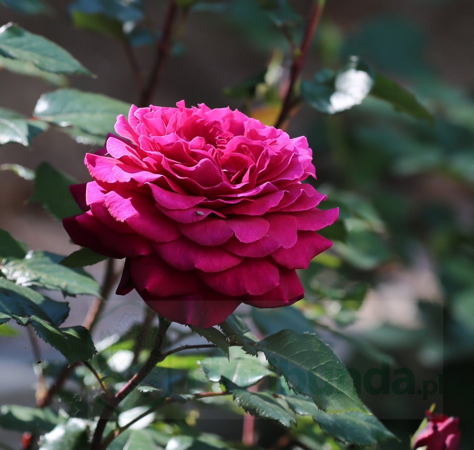 Nieważne czy lubicie ciemne, mocne kolory nie przejdziecie obok niej obojętnie. To trudne zadanie znaleźć synergiczne połączenie : kwiat, liście , łodyga. Bellevue to się udaje, dzięki czemu przyciąga wzrok. Kwiat jest duży jak przystało na różę wielkokwiatową. Zbudowany bogato z wielu płatków, przypominający kamelię. W pąku ciemnoszkarłatny, stopniowo zmienia się w kierunku intensywnej purpury. Tutaj to połączenie tych dwóch barw dobrze ze sobą współgra. Uzupełnieniem są ciemne łodygi i wyjątkowo ozdobne, błyszczące liście . Pędy są długie, smukłe, delikatnie okolcowane . Oczywistym jest że róża pysznie prezentuje się kompozycji bukietowej . Nie musimy wahać się czy ścinać czy nie, ponieważ szybko powtarza kwitnienie . Jak na nią patrzę to budzi ona skojarzenia z taką babciną różą, którą wspominamy z nostalgią po wielu latach. To duży komplement w pełni zasłużony.