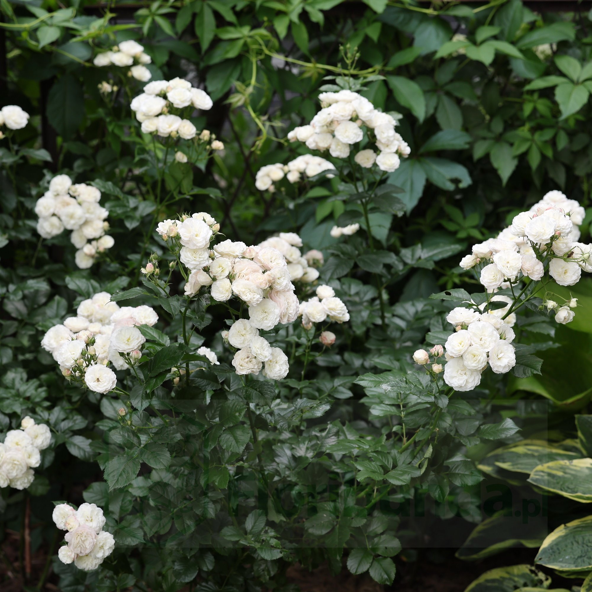 Róża krzaczasta - kwiaty zabrane w kwiatostany . Odmiana ta cechuję się dość dużymi kwiatami jak na tą grupę róż. Osiągają do 5 cm średnicy, mają kształtną rozetową budowę i ładny kolor - kremowy z różowymi przebarwieniami . Cechy wspólne dla tej grupu to dobra odporność na deszcz i choroby grzybowe.