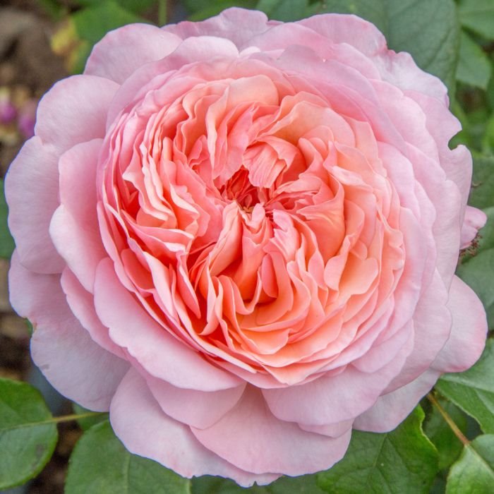 JEAN DE LA FONTAINE produkuje piękne, duże kwiaty o średnicy 11 cm, przeważnie pojedyncze lub czasami zebrane we wdzięczne bukiety składające się z 2 do 3 kwiatów. Z kulistych pąków rodzą się eleganckie piękności, które szybko przybierają typowy kształt historycznych róż. Ich pięćdziesiąt płatków ułożonych jest pionowo i tworzy gęste , nieregularne pasaże. Odcień zdobiący różę to subtelny gradient świetlistego jasnego różu, ocieplony w sercu niuansami łososiowo-morelowymi. Wyczuwamy w pierwszej nucie cytrynę szybko uzupełnianą aromatami róży, fiołka z niuansami zapachów miodu. Nie wahaj się i wytnij trochę kwitnących pędów do swoich bukietów. Krzew róży JEAN DE LA FONTAINE rośnie do wysokości około 60 do 70 cm o regularnej, raczej wyprostowanej sylwetce. Jej wspaniałe, półmatowe, trawiastozielone liście, lekko zabarwione brązem na młodych pędach, charakteryzują się bardzo dobrą odpornością na choroby, nawet pod koniec sezonu.