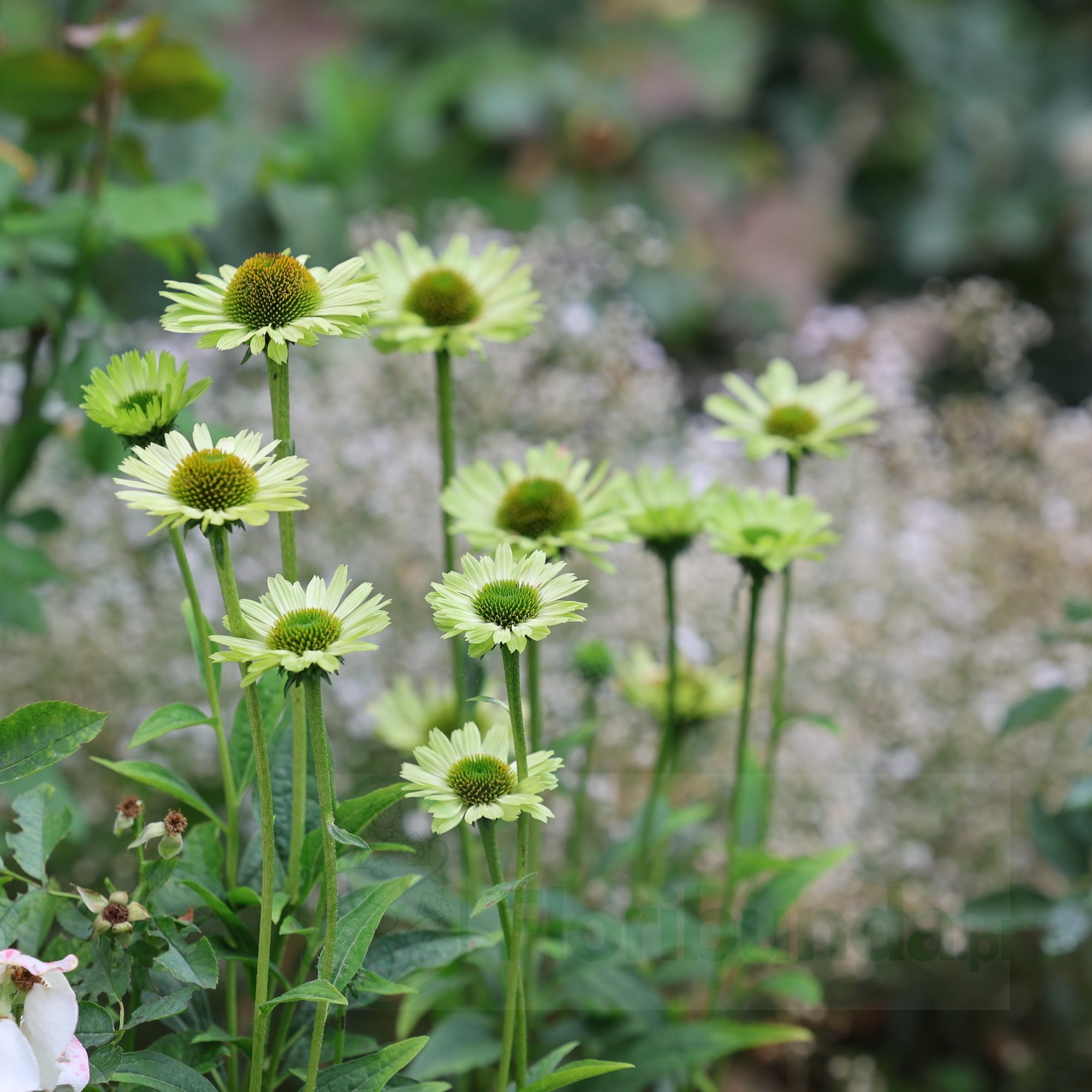 Jeżówka 'Green Jewel' jest jedną z nielicznych odmian o zielonych kwiatach – doskonale sprawdza się w nowoczesnych aranżacjach, gdzie szuka się nietypowych barw i kontrastów.