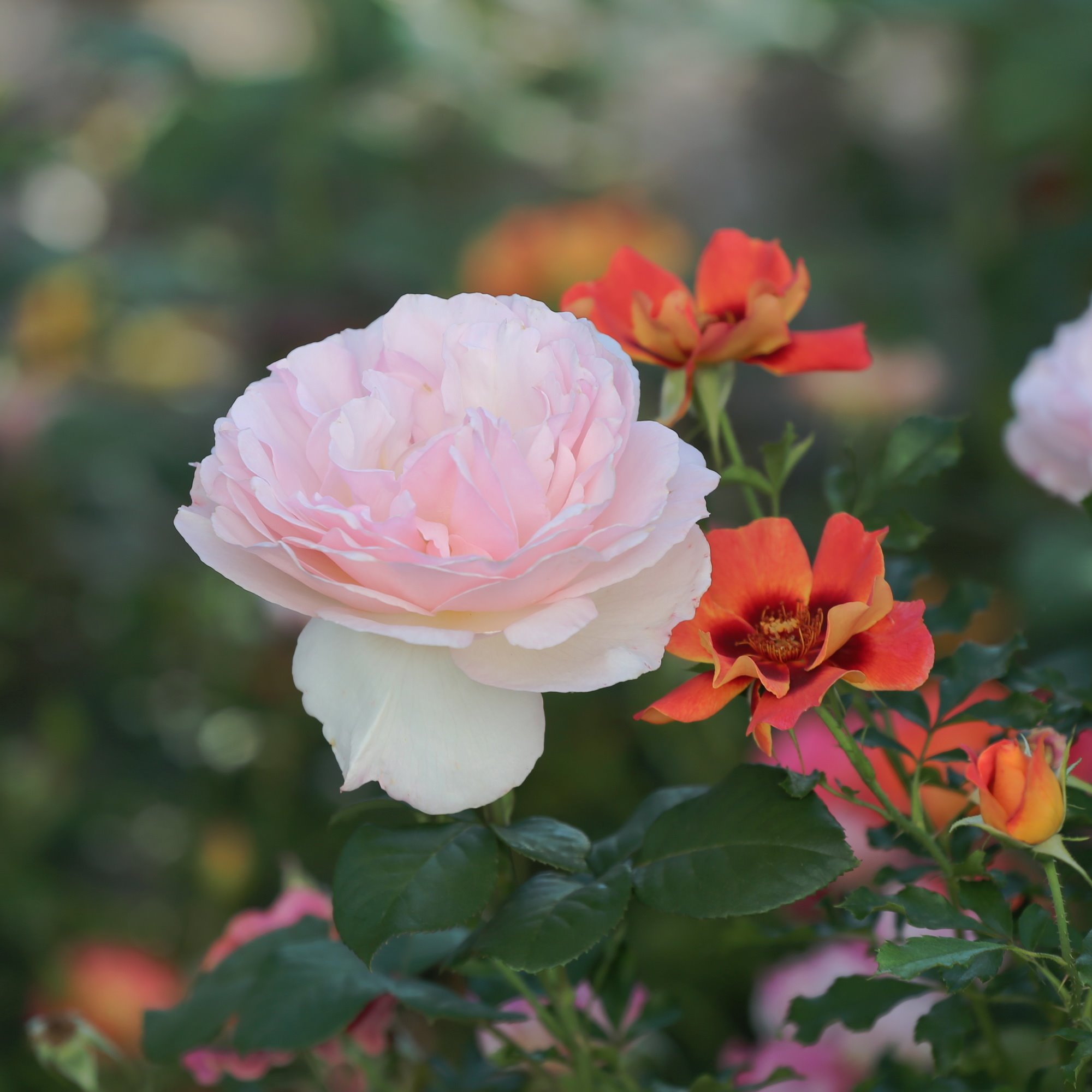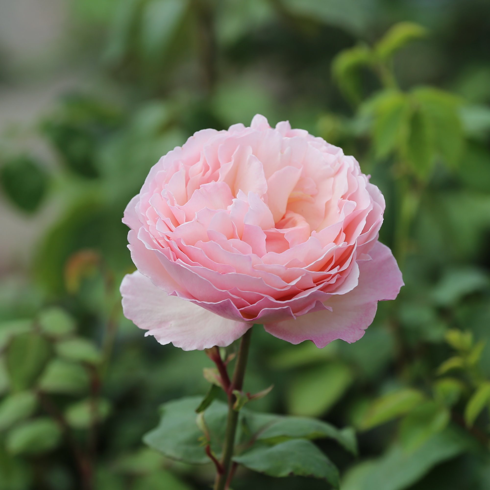 Ja osobiście mam z nią mało styczności a to za sprawą tego, że jest tak popularna, że częściej to Wy ją widzicie niż ja u nas na szkółce. Na pewno jest to róża z dużym wigorem ponieważ już w pierwszym roku potrafi wyskoczyć do jednego metra, przy tym jest wyprostowana. Nie liczcie więc w jej przypadku na barokowy krzew z pędami kwiatowymi uginającymi się prawie ku ziemi. To co dla jednych może być zaletą dla kogoś innego wadą. Jest na to prosta rada. Musimy zapewnić jej odpowiednie towarzystwo. Czyli książęca róża w otoczeniu świty która ją uzupełnia i dodaje jej tylko blasku. W podszyciu możemy widzieć drobne kwiaty, wąskie pędy traw, ale też duże okazałe liście.
